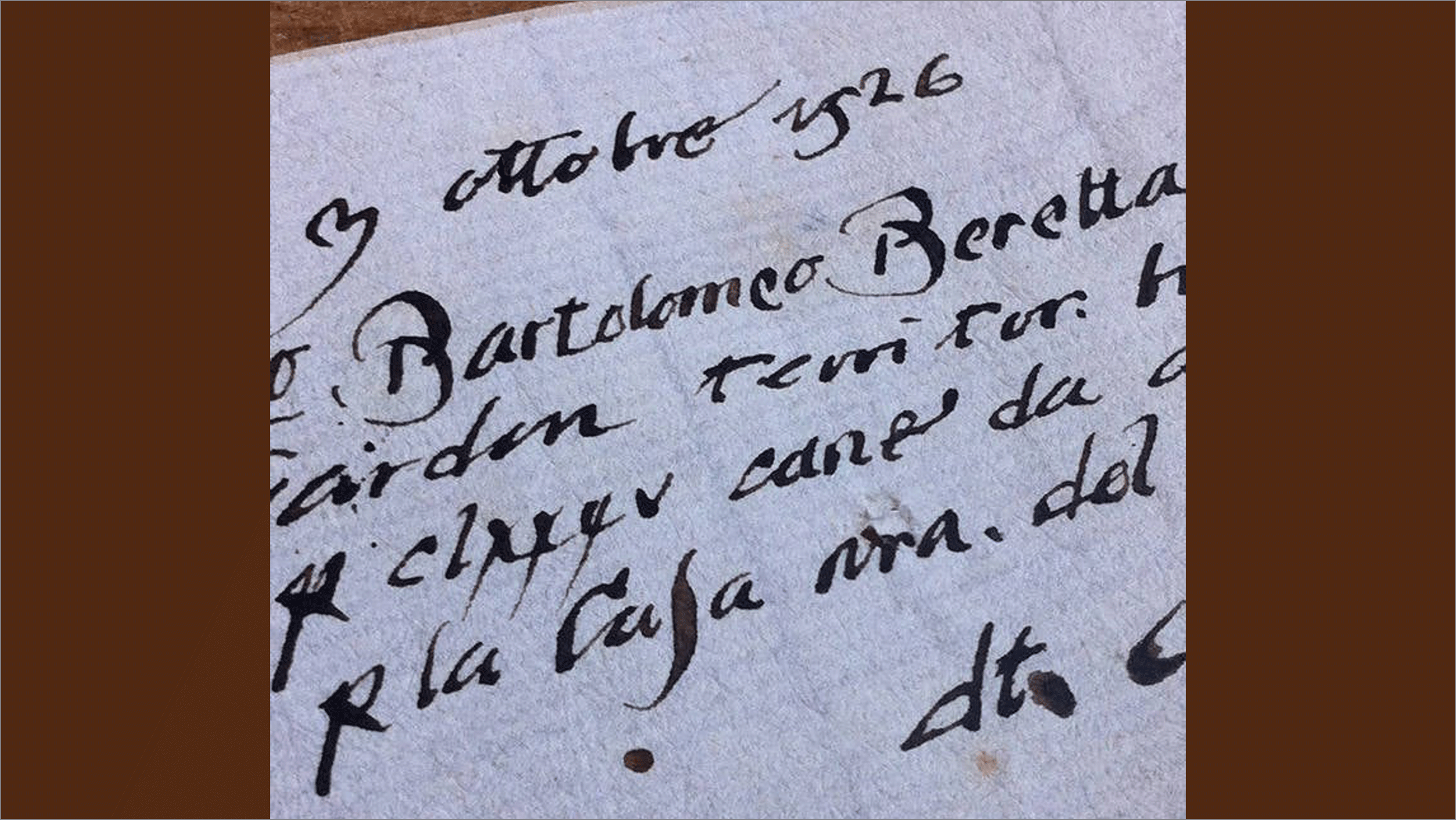 3/10/1526 é a data do recibo assinado por Mestre Bartolomeo Beretta, de Gardone Val Trompia, território perto de Bréscia, na Lombardia, pelo pagamento de 296 ducados por 185 canos de arcabuz, efetuado pela Casa do Arsenal da República de Veneza. Embora seja essa a primeira data registrada, provavelmente as atividades da família remontavam ao séc. XV. O título de Mestre, na época das guildas artesanais, indicava experiência de pelo menos 2 gerações e Beretta estabelecera sua forjaria em uma zona rica em ferro, contando com muitas forjas, onde já se produziam armas antes da chegada dos romanos, logo, ser fornecedor da República de Veneza era indício de excelência. Bartolomeo desvendou os mistérios da forja, limagem e perfuração de canos, parte fundamental de uma arma de fogo.